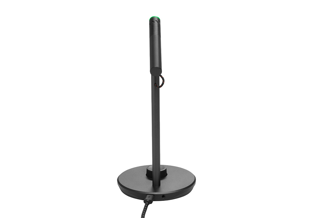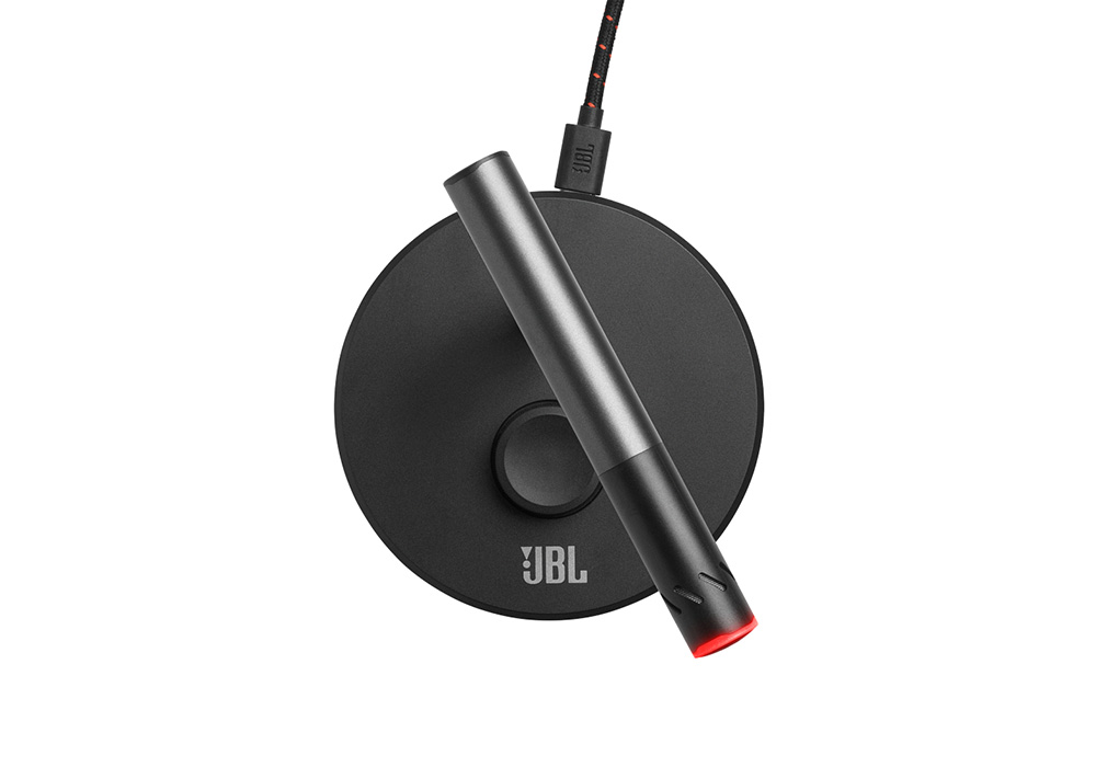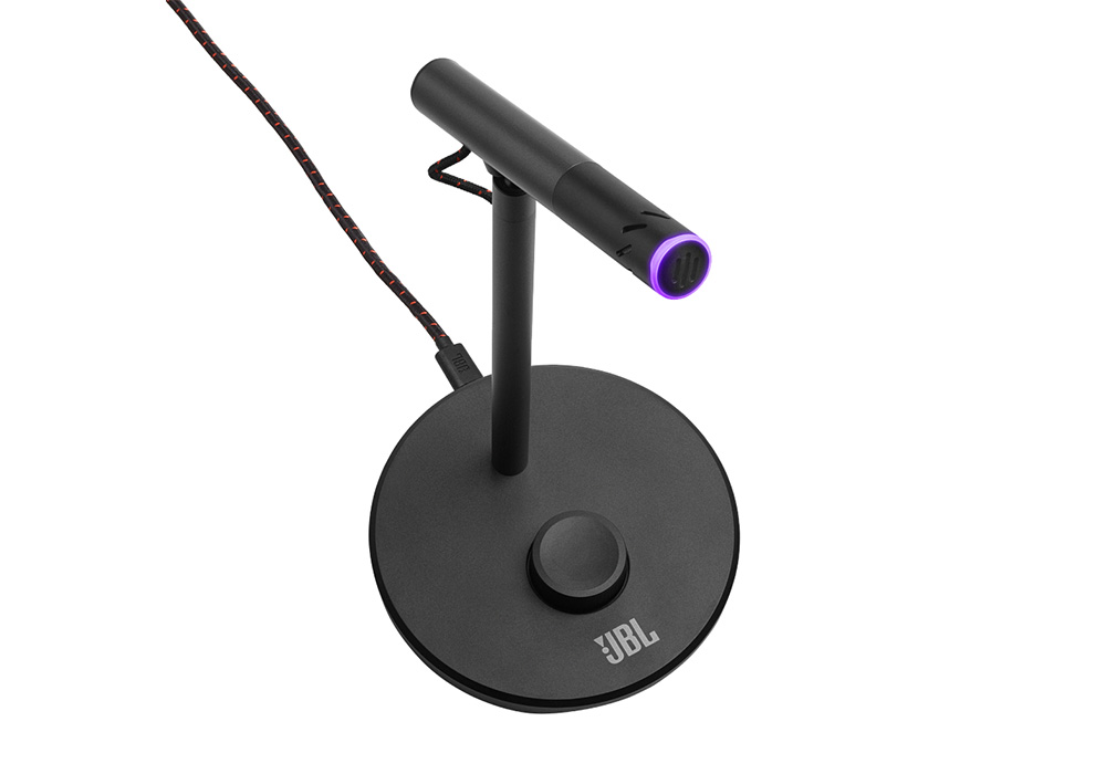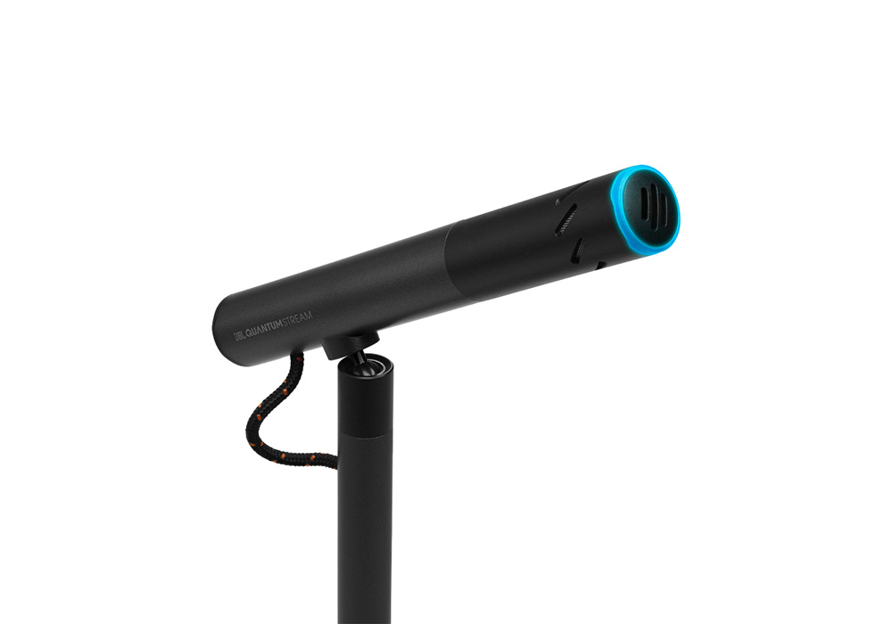 מיקרופון דגם Quantum Stream Talk מבית JBL. עם דפוס לאיסוף צליל קרדיואידי ועיצוב אלגנטי ופונקציונלי הופך את המיקרופון למושלם עבור קול בודד, ומבטיח שכל רעשים אקראיים במקומות אחרים בחדר לא יישמעו.